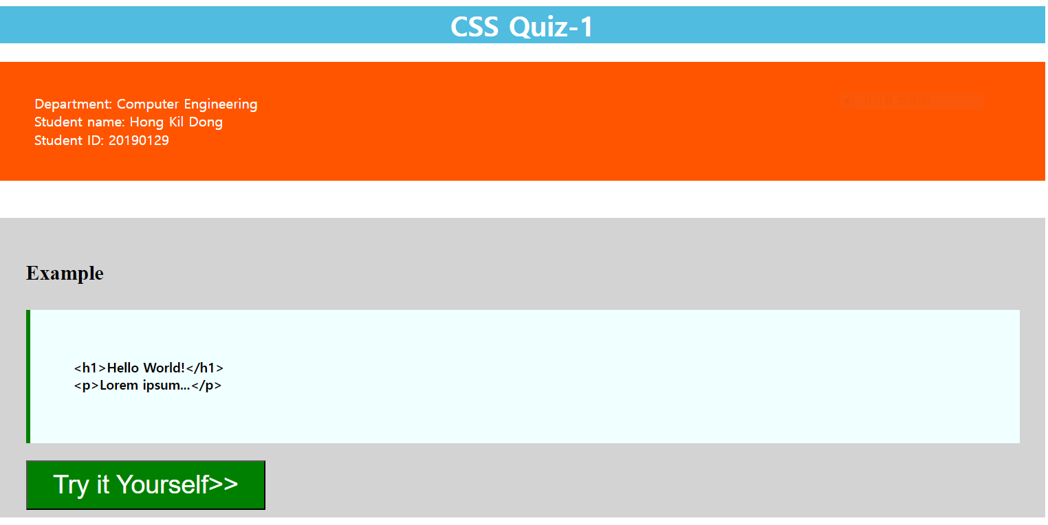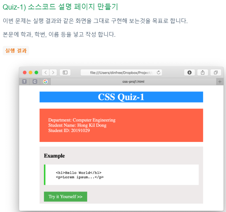 이번에는 CSS를 활용한 예제를 풀어볼 것이다. 밑에 링크에 들어가면 문제를 확인할 수 있다.