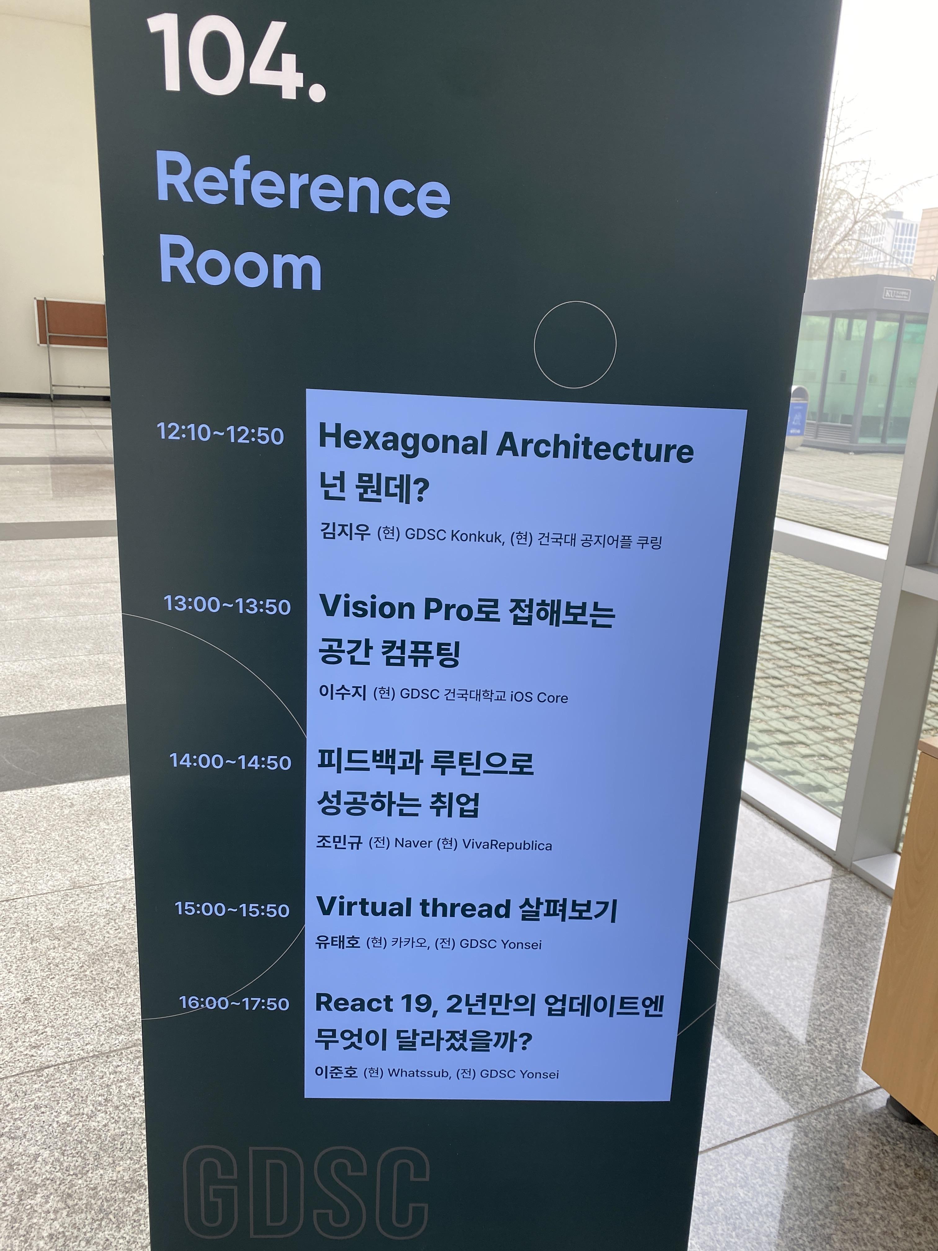 오늘 GDSC에서 주최한 'kprintf'라는 행사를 다녀왔다. 디스코드에서 kprintf라는 행사가 열린다는 것을 확인하고 무슨 주제에 대한 강의가 열리는지 살펴봤다. 다양한 주제들이 있었는데 그 중에 React에 대한, 정확히는 React 버전이 19로 업데이트되면서 어떻게 바뀌는지 알려주는 강의가 있길래 바로 신청했다. React를 사용해본 적은 꽤 있지만 버전이 몇인지, 또 최신 기능은 무엇인지에 대한 관심은 갖지 않았었다. 이번 세션을 통해 React에 대하여 더 깊은 이해도를 가질 수 있기를 기대했다.
