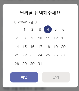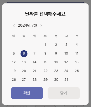- 모달 닫힘 로직: 모달이 닫힐 때 tempDateRef를 초기화하지만, 이는 다음번 모달을 열 때 사용될 초기값에만 영향을 미칩니다. 이미 선택되고 확인된 날짜(selectedDate)는 그대로 유지됩니다.
