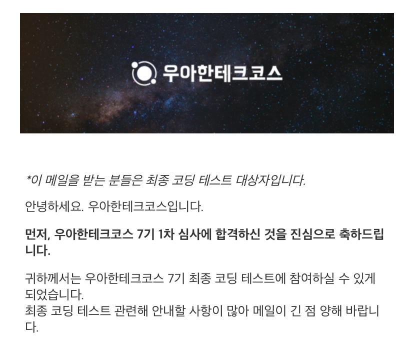 ‘*이 메일을 받는 분들은 최종 코딩 테스트 대상자입니다.’