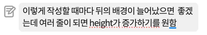 두 줄 이상일 때부터는 배경이 메모장의 최대 width로 유지되면서 줄 수 만큼 height가 늘어나야했다.