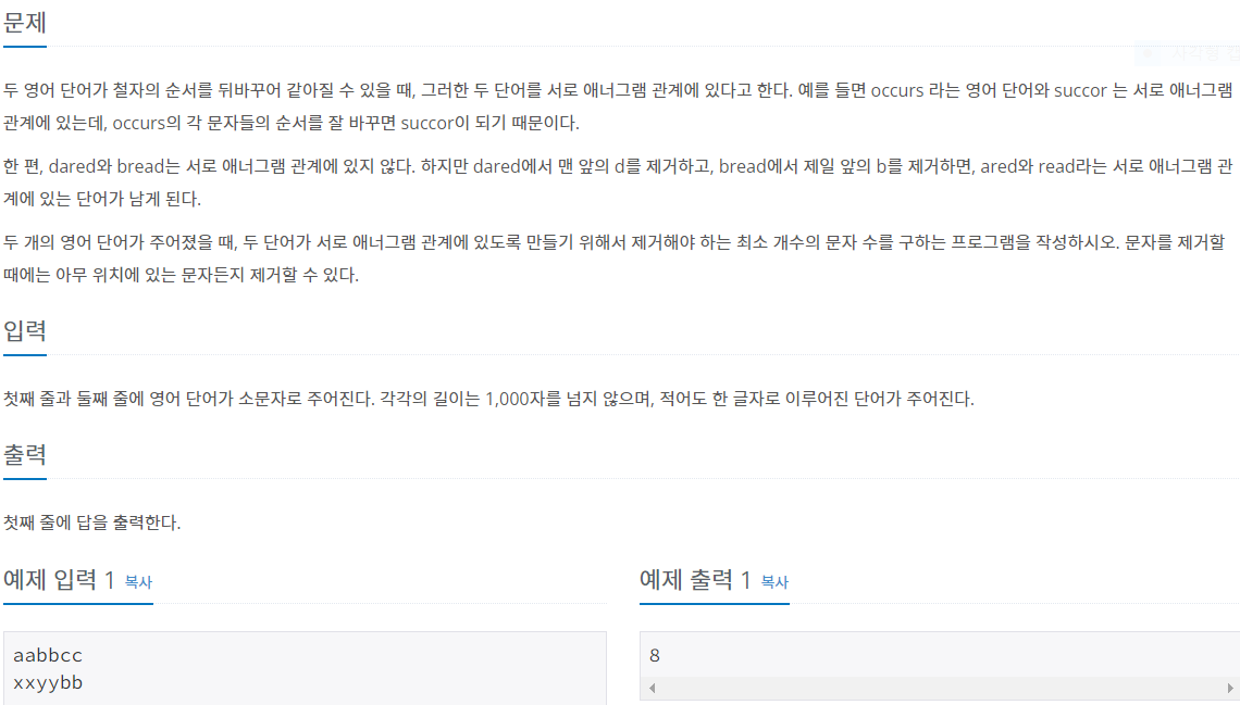5. 루프가 다 끝나면 첫번째 벡터, 두번째 벡터에서 남은 알파벳 개수를 더한다.