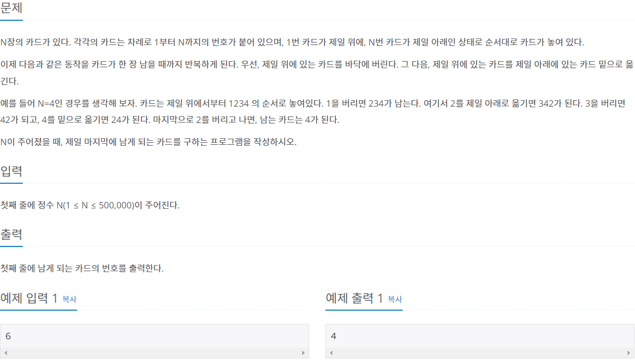 q.push(temp); // temp를 큐에 넣는다.(아까 제일 위에 있었던 카드 숫자)