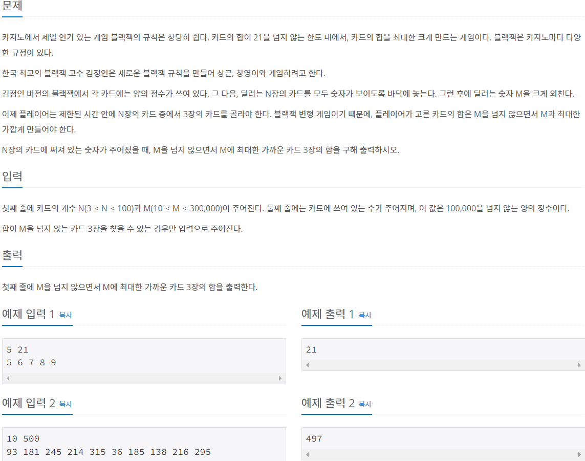 -> 삼중루프를 돌려서 m과 가장 가깝지만 m보다 작은 값을 찾는다.