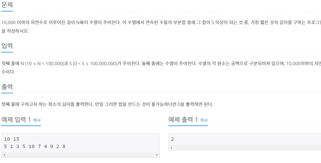9. 만약 s보다 큰 부분합을 찾지 못했다면 0을 출력하고, 아니라면 len을 출력한다.