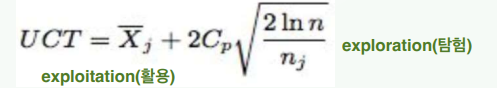 - UCT는 각 탐사된 노드에 UCB 알고리즘을 사용