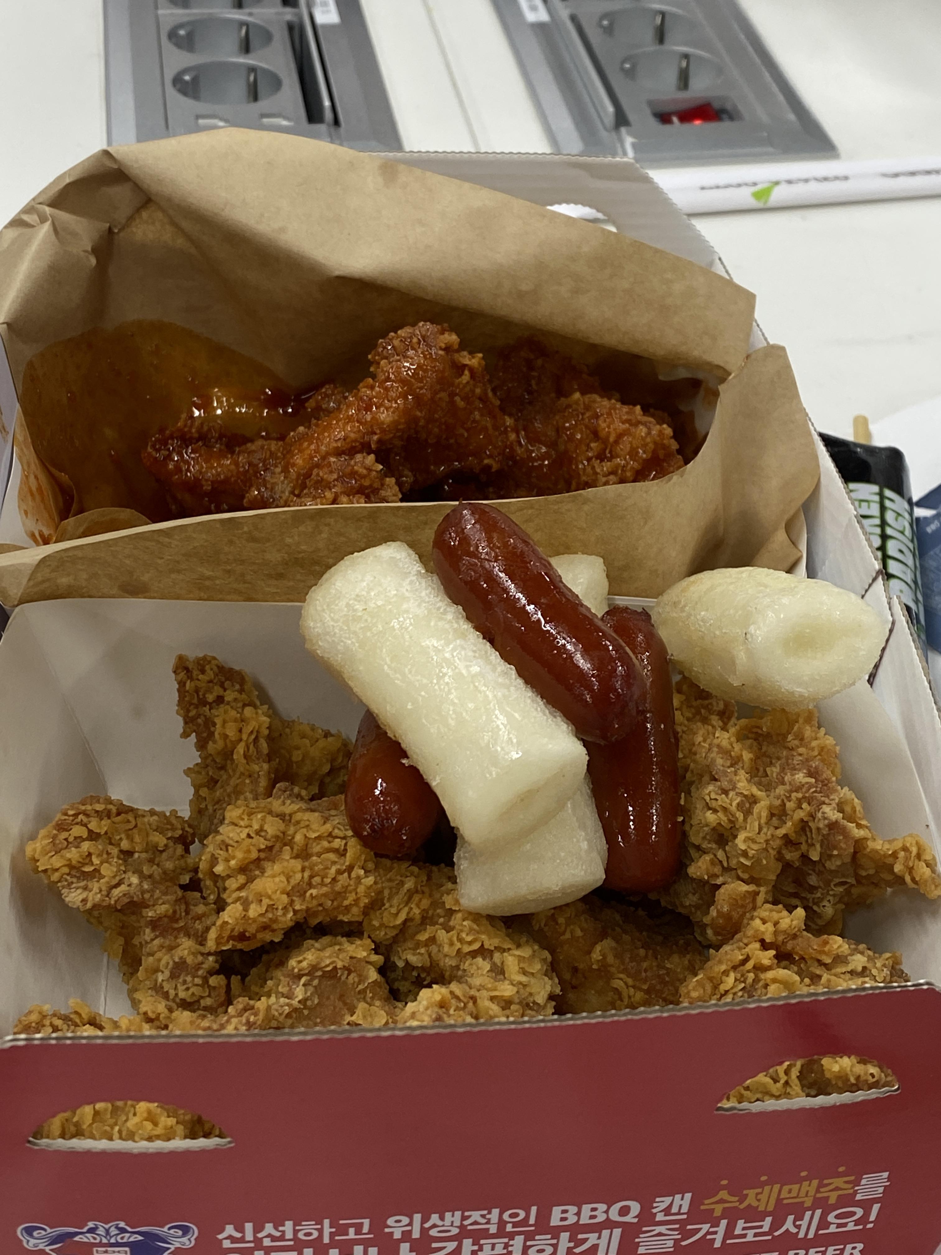 점심에는 김치찌개와 치킨마요를, 저녁에는 피자를 먹었고, 새벽 1시에 야식으로는 BBQ 황금올리브 순살치킨을 먹었다. 그리고 도중에 음료를 시켜주셨는데, 나는 아이스티를 시켜먹었다. 하루동안 꼬박 코딩을 하는 것은 체력적으로 꽤 힘든 일이긴 하지만, 맛있는 음식들을 많이 주셔서 지치지 않고 꾸준히 할 수 있었던 것 같다. 주최하신 분들께 감사를…