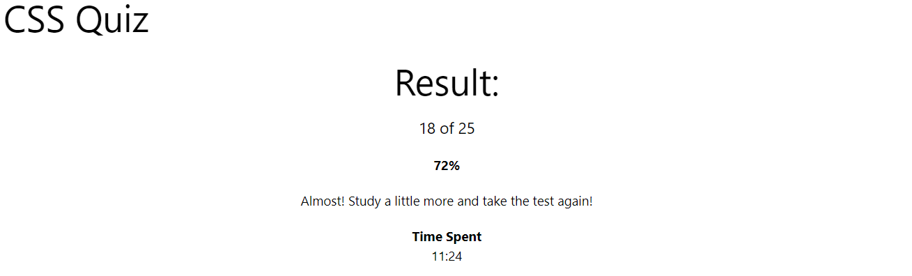 이번에는 CSS 퀴즈를 풀어보았다. 저번과는 다르게 25문제 밖에 되지 않았는데, 과연 결과는?