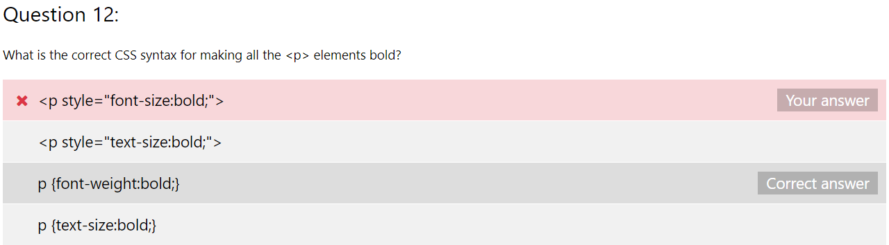 모든 <p> 요소를 볼드체로 만들기 위한 올바른 CSS 구문은 무엇인가요?